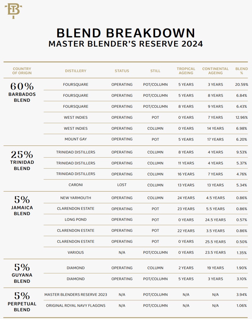 For this year’s blend, we drew inspiration from historical rums in our collection and the unique flavour profiles they exhibited over half a century ago. These rums, since lost in the rum world, were rich with notes of baked banana, dusty chocolate, mocha milkshakes, honey, tobacco, leather, liquorice, and spice. These flavours were mapped out and became our guide."