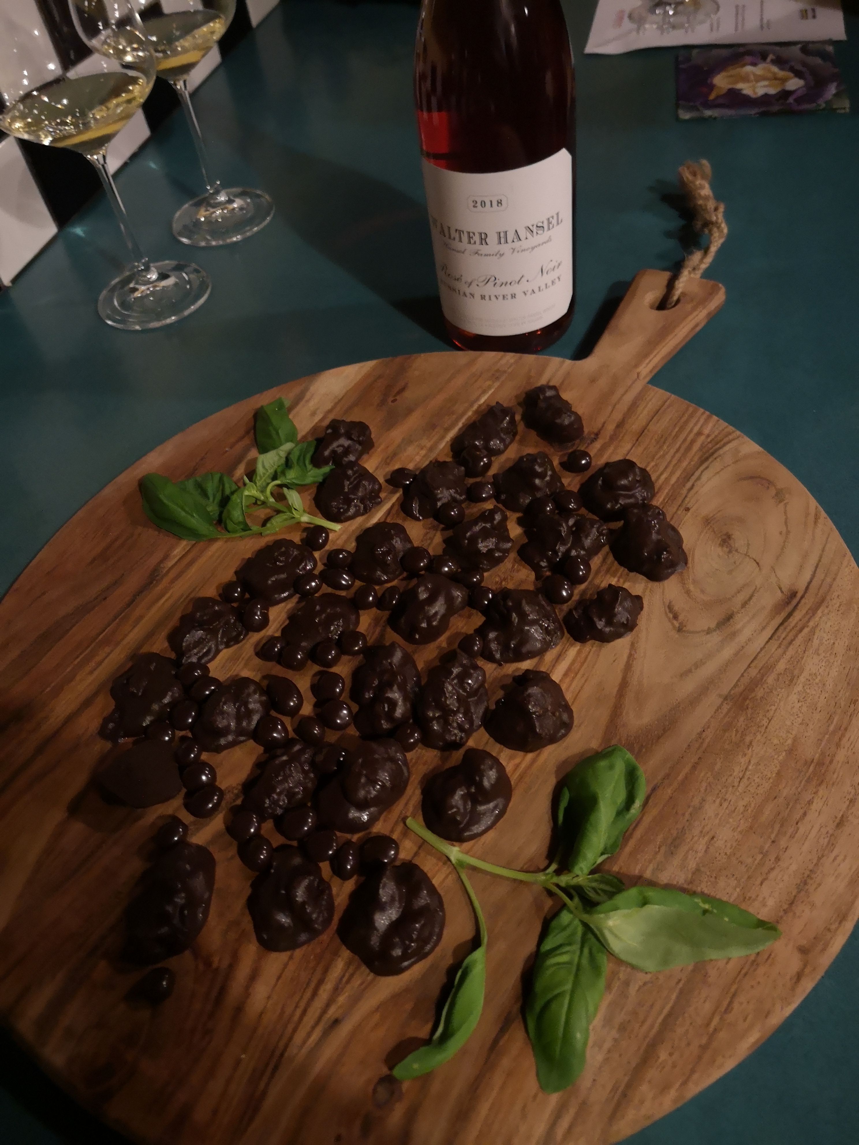 Walter Hansel Pinot Noir Rose with Chocolate Covered Strawberries BitesGoing into the tasting, this wine was causing me a touch of anxiety. Normally with sweetness, you want to match it. This wine was definitely not going to match the sweetness of the strawberry bites. It’s a bigger, bolder style of rose and it was going to be interesting. This was a pairing that really tested the note of “pair to match flavoursâ€. The wine was strawberry-forward, so in theory, it might work? Well, it did, and it was the second favourite pairing of the evening!