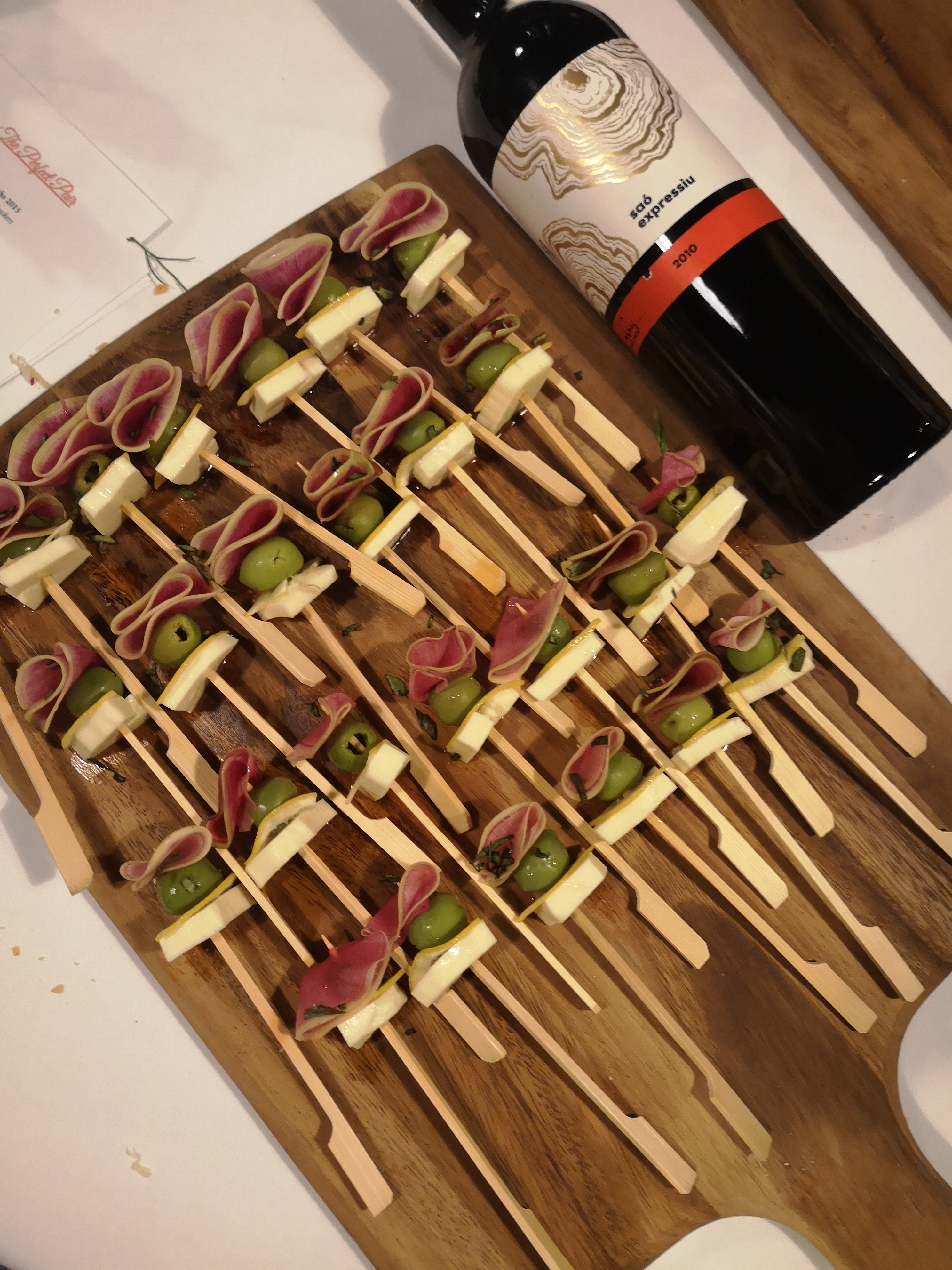 Mas Blanch et Jove Sao Expressiu with Halloumi, Olive, Lemon skewersPairing something as big and bold like the Sao Expressiu with lemon is not something I thought I would ever do. It’s a contradiction of flavours that normally would work, but tonight it did. The salty notes of the halloumi and olive allowed for the bright, tangy notes of the lemon to brighten up the wine. Even though it changed the wine completely, it showed some of the more nuanced notes of the wine, instead of the juicy fruit, tobacco and leather. This pairing was a curveball, and it divided the room into the lovers and the haters. A very fun experiment!