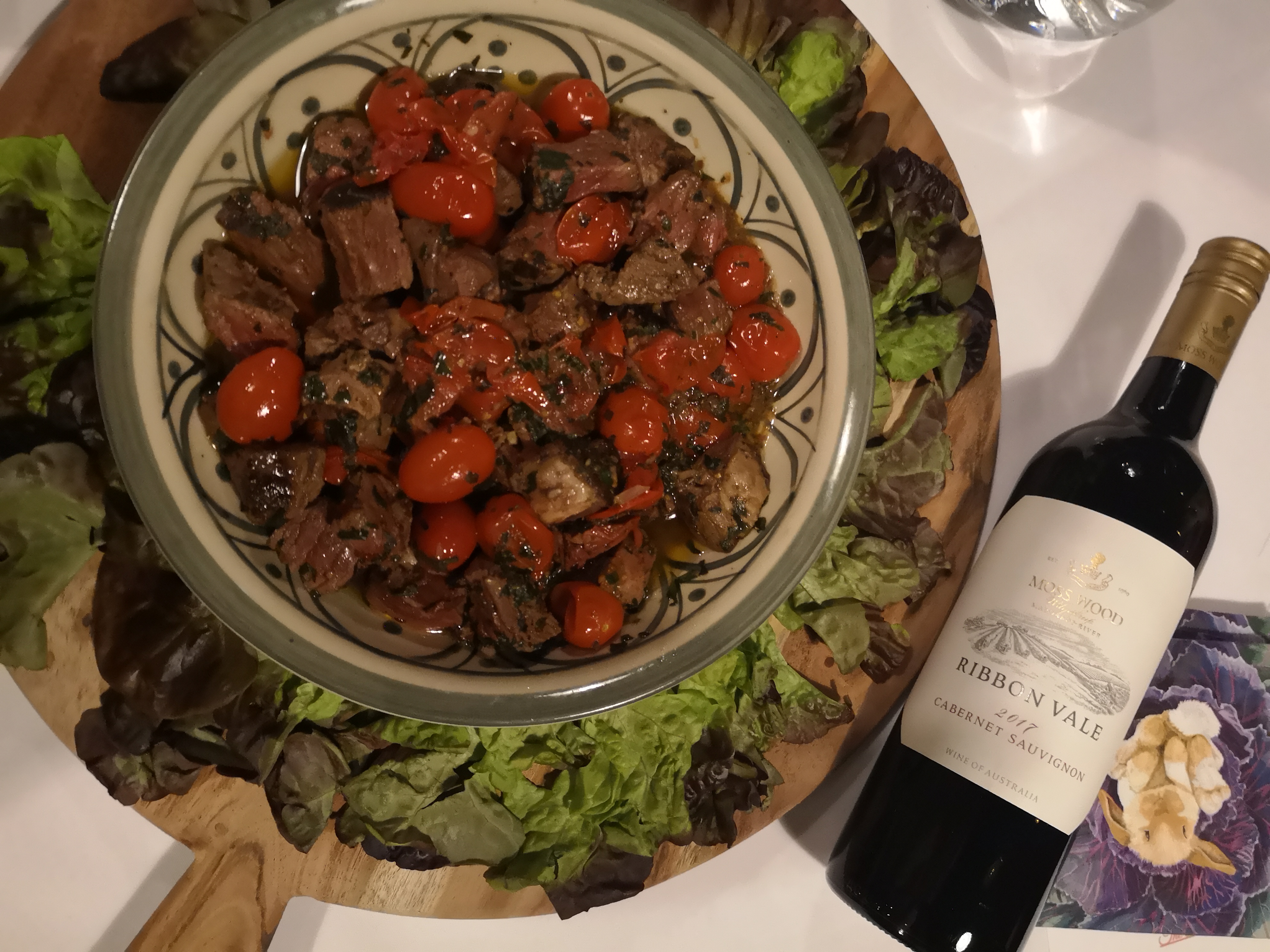 Moss Wood Ribbon Vale Cabernet Sauvignon with Steak Bites