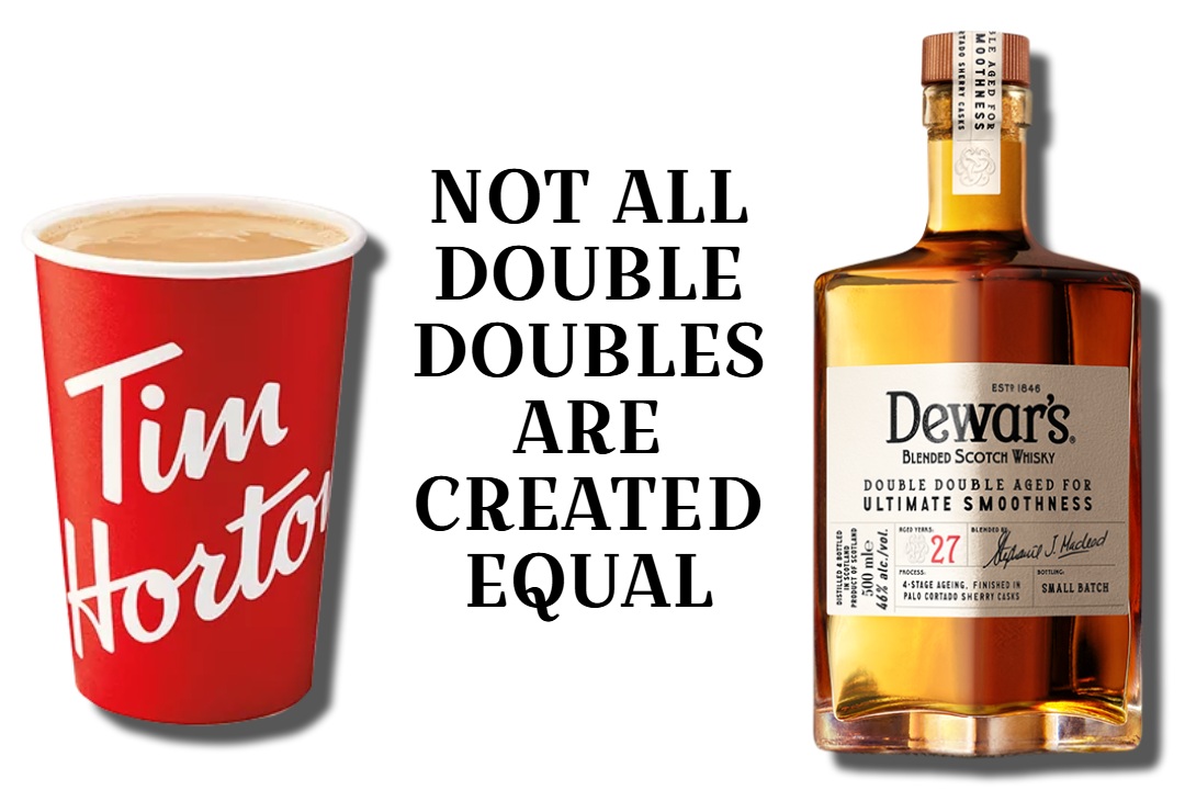 If you name your Blended Scotch “Double Double”, it is pretty apparent that you are trying to corner the Canadian market. That is exactly what Dewar’s has done with this Blended Scotch Whisky range. Featuring 21, 27, and 32 year old versions, all available in cute little 375ml bottles with an unfortunately silly amount of extra packaging around them, the Double Double series has been quite popular over the past few years.