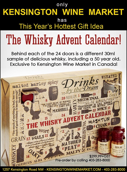 Kensington Wine Market's exclusive Whisky Advent Calendars are already 2/3 Pre- Sold. They are expected to arrive later this month, or early next. This is this year's hottest gift idea, and they will sell out. Don't delay in pre-ordering yours today!