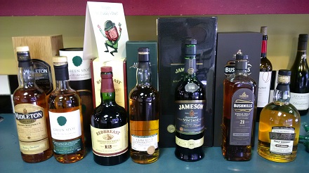A group of intrepid whiskey tasters met at Kensington Wine Market on St. Patrick's Day 2014, Monday March 17,  to sample through a selection of very tasty Irish whiskies. While some around town were stumbling around blind drunk on cheap beer dyed green, our guests were blindly tasting their way through seven sophisticated Irish whiskies including. We sampled a few blends, a blended malt, singles malts and two pure pot still Irish whiskies. Here is our range: