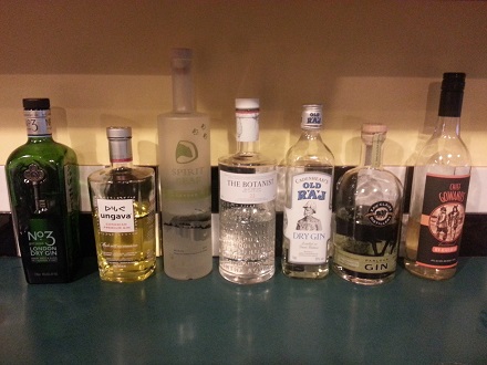 With the autumn breezes blowing nightly now, it's natural to start making the transition into deeper, more warming spirits (possibly of the peated persuasion) in preparation of the cold winter months. Tonight was a final salute to warm months gone by, and a welcoming handshake to the oh-so-familiar Calgary fall/winter. We make this salute by toasting with the spirit that truly embodies the ability to make it through even the worst of winters, and come out the other side to thrive and grow. Here's to lovely juniper!Though to be fair, juniper was not the driving force of all of the gins tonight. We sampled a wide range from a few different countries, imbued with the essences of a very diverse collection of botanicals, fruits, and spices. The evening was on the cusp of crisp, with the telltale autumn breeze, but just as Gin is a light spirit, so were the spirits of those gathered to laugh and learn and taste! With gustatory help from The Peasant Cheese company, we made our way through 7 unique Gins:
