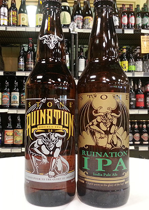 Ruination by Stone brewingThere are some real mixed opinions regarding Stone's attempt at changing with modern beer drinker tastes by discontinuing and completely changing their core lineup. The original Ruination has been retired, but in its wake, rises this slightly lighter malted and very tropical monster IPA they call Ruination 2.0. I must say I love this incarnation more than I do the first. We still have a couple left of the original Ruination so come grab them both and compare for yourself! ($12.29 for a 650mL bottle)