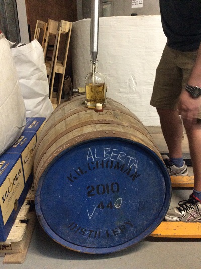 tastings, parties and one of whiskies. One of the most memorable event was a special and very exclusive Kilchoman warehouse tasting held in the distillery's newest warehouse. We filed into the warehouse, built in the hills above Loch Indaal a few miles north of Bruichladdich, while the wind and rain lashed the roof in violent bursts. It was a very memorable tasting, consisting of a range of barrel samples, but more crucially it opened the door for two opportunities. While speaking with Anthony Wills, the founder and managing director of Kilchoman it became clear that our latest KWM Cask was sitting in the bottling hall about to be bottled. Firstly, I had the opportunity to draw and fill a sample bottle from the cask by my own hand, a rare treat. And secondly, it opened a conversation with Anthony and Kilchoman about bottling 50mls of our cask for the 2015 KWM Whisky Advent Calendar. To my surprise they were they were very interested, and even offered to bottle some Loch Gorm for us too!