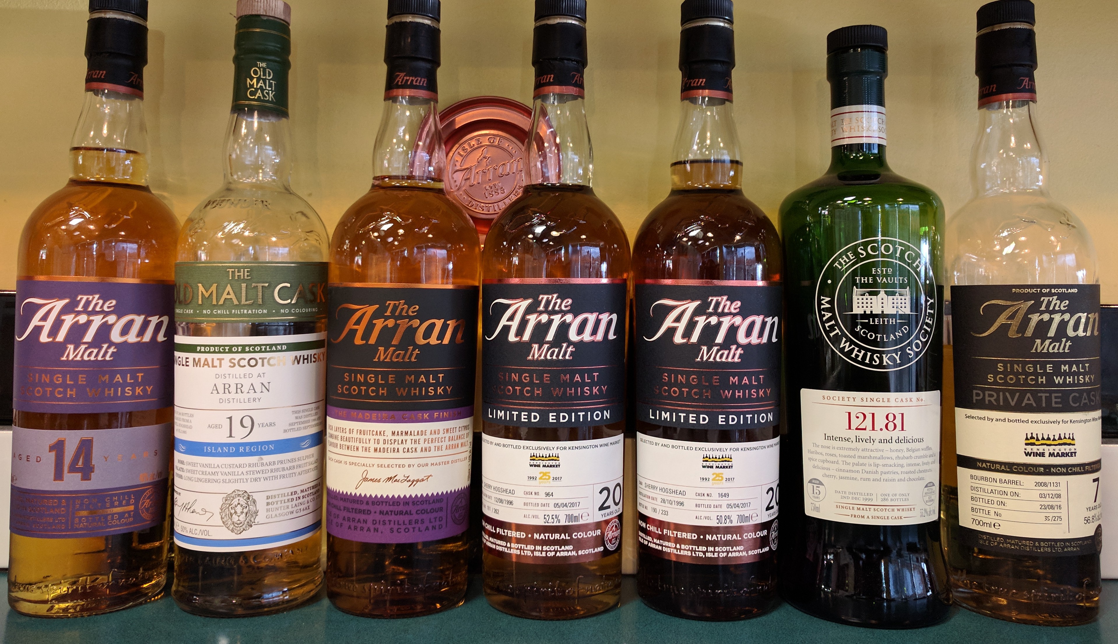Kensington Wine Market has been lucky enough to have a very good relationship with Arran and its representatives for a long time. We just bottled our 9th and 10th single casks with them. Joining our peated 7-year-old single casks are two 20-year-old unpeated malts both aged in separate sherry hogsheads.