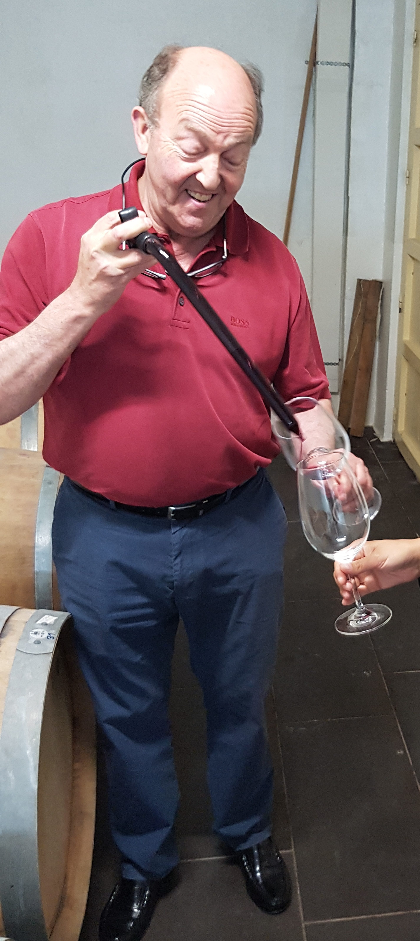 [/caption]After that Basilio took us around to different spots within the place and it seemed everywhere we went, we were navigating through stainless steel containers, barrels of new experiments, and different equipment for making wine. After talking a bit about wine we headed downstairs to his cellars where he has all of his wines divided up depending on grape or vineyard and vintages as well. We started tasting from the barrels to be able to compare how each barrel changes the flavour and then just kept tasting and tasting. It was amazing. He treated every barrel like an old friend, remembering what it was, where it came from and what kind of barrel it was made with. Basilio buys his grapes from different vineyards but they are all people he has been working with for a long time and from very small plots with old vines. Some of the grapes come from plots that are only 5 rows and since they are old vines, they also have very small production. After trying as many of the barrels that we could we headed back upstairs to try a couple new treats that we don't offer yet but hopefully will be getting in the not too distant future. What we do carry from him is amazing and definitely worth a try.