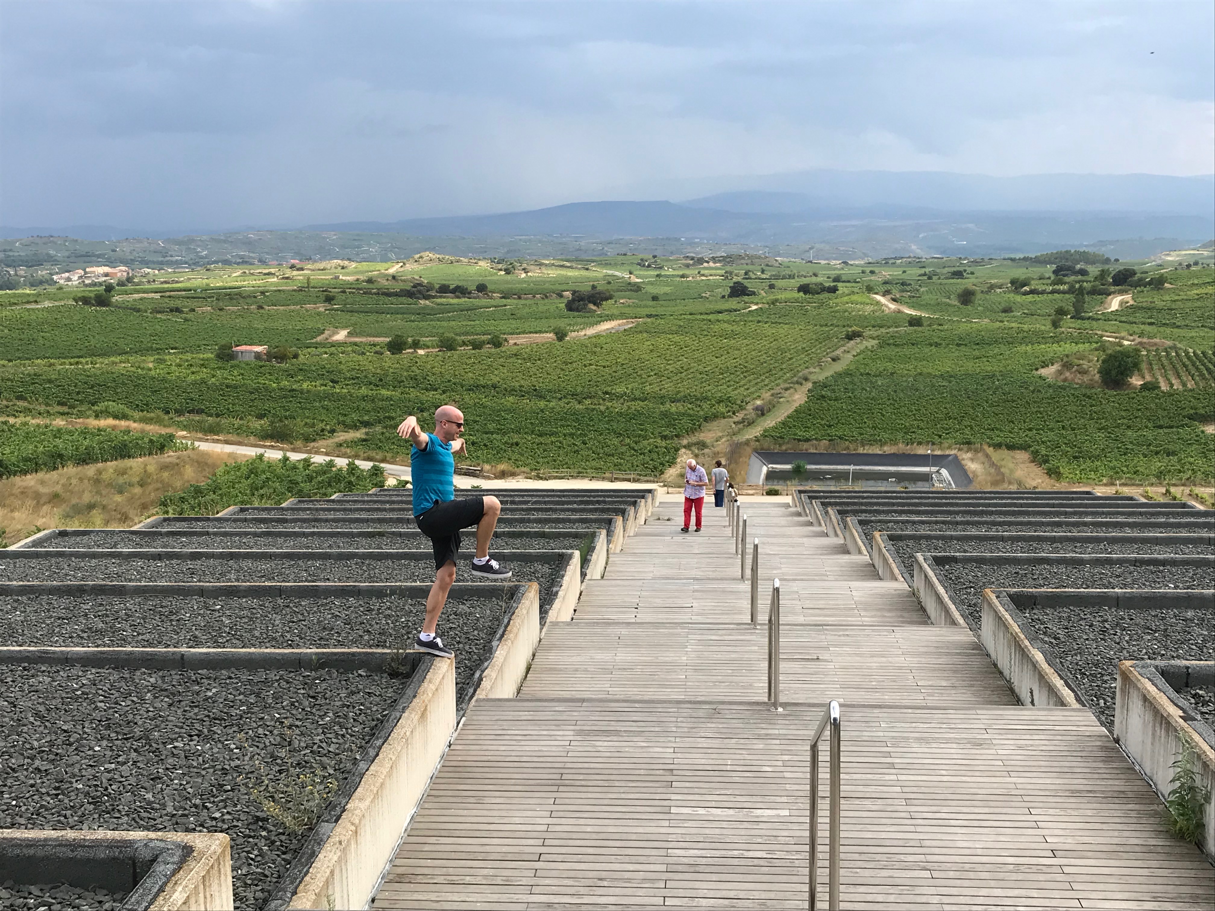 The Rioja is a large wine region in the Northeastern area of Spain. It is a long valley with mountain ranges on both sides, approximately 130 km's long and split into 3 different regions. Rioja Alta(high), Rioja Baja(low) and Rioja Alavesa. These are divided due to the layout of the regions and also the Ebro River which separates the Rioja Alavesa to the North. Rioja Baja and Alta are separated at approximately the capital city of Rioja, Logroño. The Alavesa and Alta are quite a bit hillier than Rioja Baja, and Alavesa the hilliest of them all. We were actually able to find a lookout where you could see over the whole region and get an amazing perspective for the area and how the hills change throughout the area.