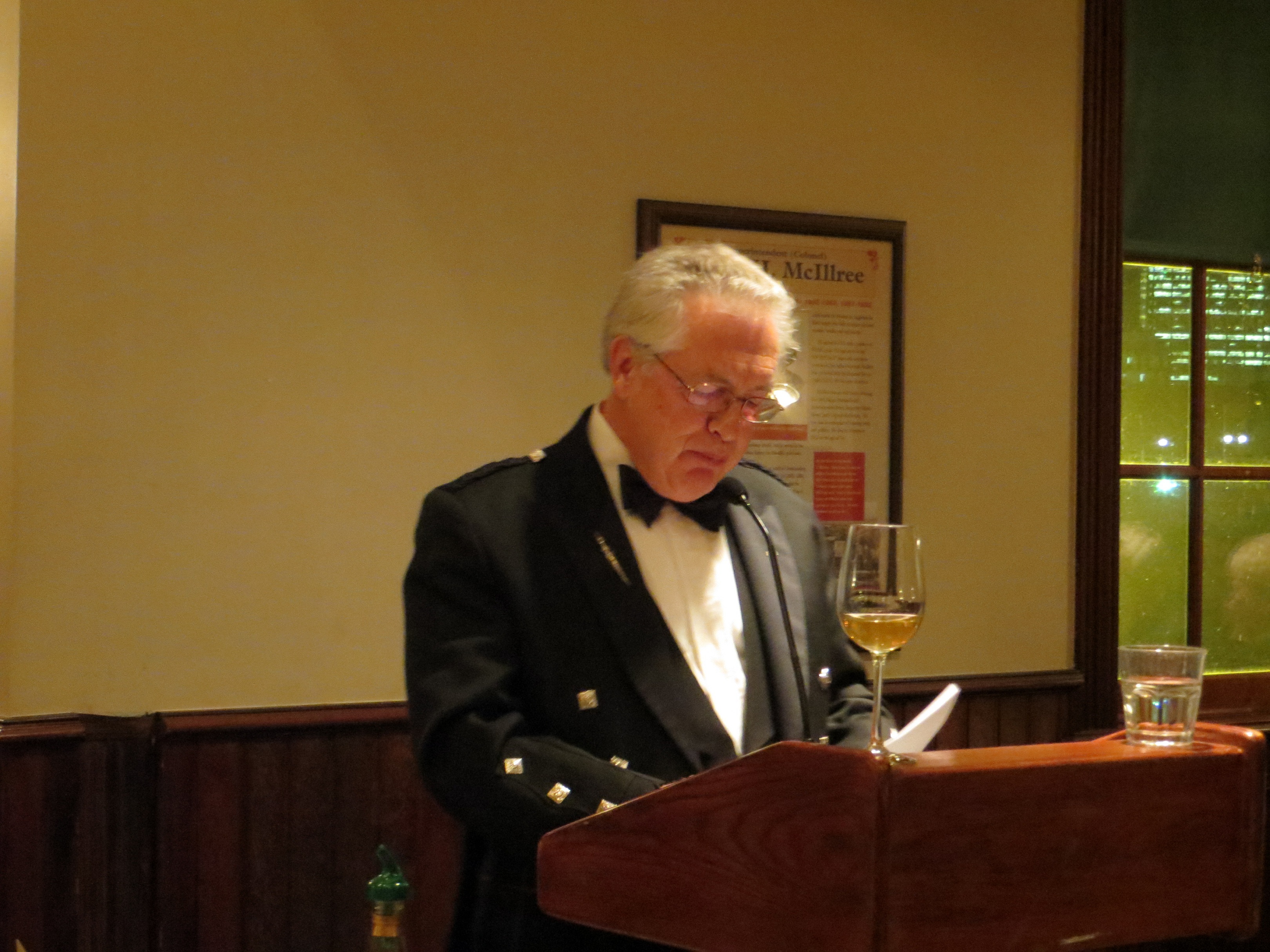 Mary Ann Houston of the Calgary Police Service returned for her 7th straight year as our piper. Terry Lauder, past President of the Calgary Burns Club who's been at 7 of our last 8 Burns Suppers also returned after a year of absence to give the Immortal Memory.