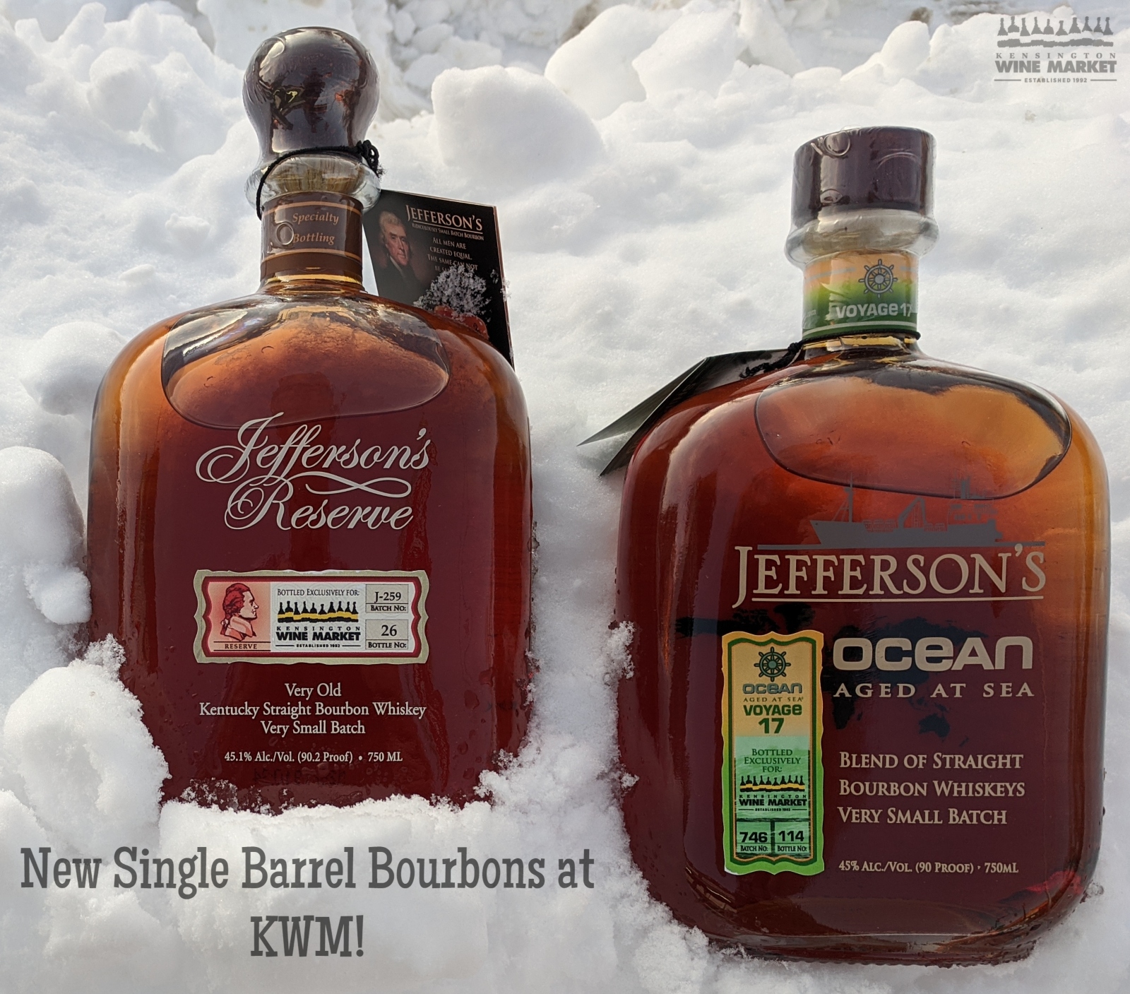 We have received not 1, but 2 Jefferson's Bourbons. This is a barrel, from Batch No. 746, of Jefferson's Ocean Aged at Sea Bourbon, voyage 17. ! Bottled at 45% this is a single barrel that we selected to have bottled exclusively for Kensington Wine Market! Our other Jefferson's KWM Cask is a Jefferson's Reserve Bourbon.