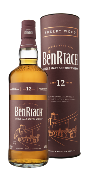 "At BenRiach Distillery we have developed a reputation for innovative maturation, using a diverse mix of cask types. This luscious 12 year old Single Malt Scotch Whisky is unconventionally made using three facets of sherry cask maturation: full sherry cask maturation, combined with Pedro Ximénez and Oloroso sherry cask finishing, for unexpected layers of fruit sweetness and toasted oak spice. Each facet of sherry cask maturation is expertly combined by our Master Blender to work in harmony, creating a luscious Single Malt Scotch Whisky with a multi- layered cocktail of fruit notes, further enriching BenRiach’s signature sweet, fruit-laden style."