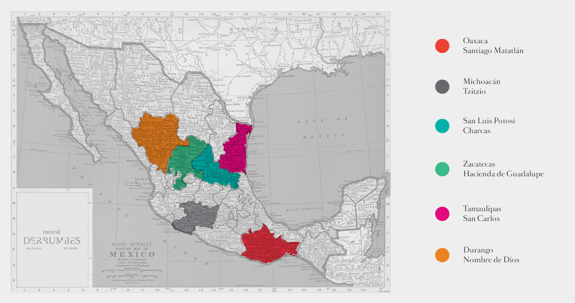 "Each bottle of Derrumbes represents a single state and each was chosen to highlight the traditions, the Terroir and organoleptic style of the region where it was made, creating together a mind grabbing experience of variety and nuances."